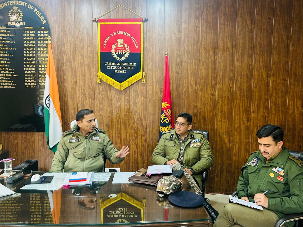 रियासी, 19 जनवरी 2026: आगामी गणतंत्र दिवस-2026 समारोहों को शांतिपूर्ण और सुरक्षित ढंग से सम्पन्न कराने के उद्देश्य से आज जिला पुलिस कार्यालय (DPO) रियासी में एक व्यापक सुरक्षा समीक्षा बैठक आयोजित की गई। बैठक की अध्यक्षता एसएसपी रियासी, श्री परमवीर सिंह, JKPS ने की। बैठक में जिले में तैनात पुलिस, अर्धसैनिक बलों और खुफिया एजेंसियों के वरिष्ठ अधिकारी मौजूद रहे।