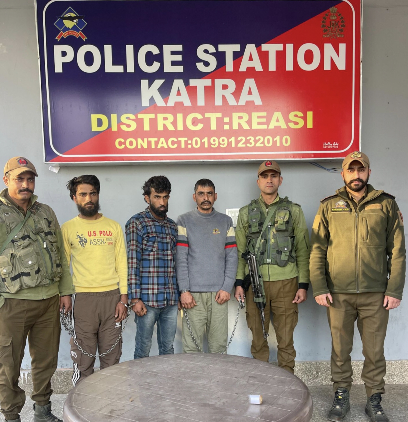 इस संबंध में पुलिस थाना कटरा में एफआईआर नंबर 01/2026 दिनांक 01.01.2026 को धारा 331(6)/115(2)/191(3) बीएनएस तथा 4/25 आर्म्स एक्ट के तहत मामला दर्ज किया गया था। मामले की गंभीरता को देखते हुए एक विशेष पुलिस टीम गठित की गई, जिसने लगातार प्रयास करते हुए 06.01.2026 को जम्मू जिले के शोवा घरोटा क्षेत्र से तीनों आरोपियों को गिरफ्तार किया।