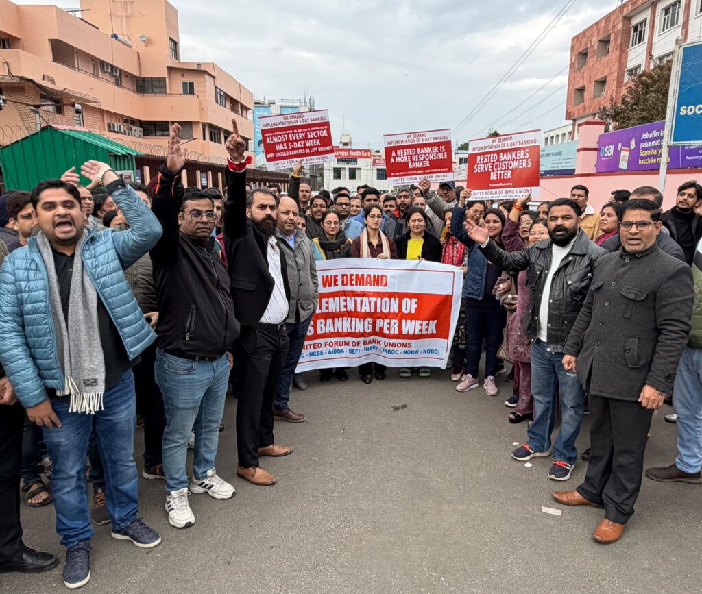Jammu (27 January 2026):The United Forum of Bank Unions (UFBU) today successfully observed a nationwide strike and demonstrations on 27 January 2026 as part of the ongoing, countrywide agitational programme demanding the immediate implementation of a 5-day work week in the banking industry.