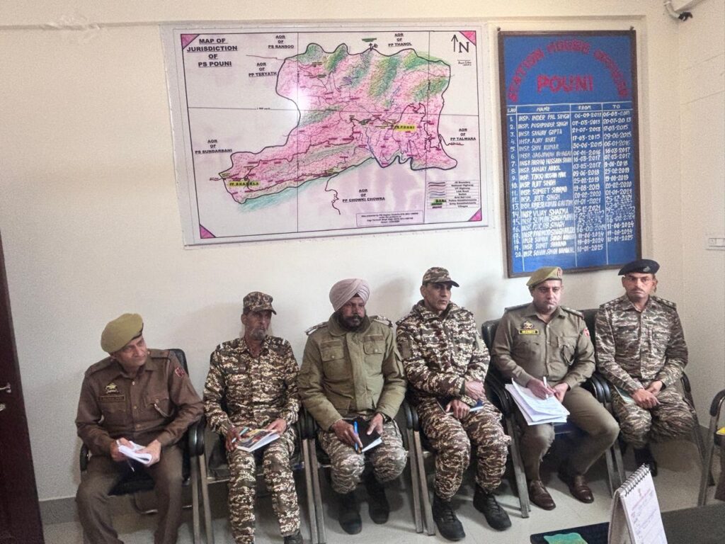 बैठक में अतिरिक्त पुलिस अधीक्षक रियासी, उप पुलिस अधीक्षक एसओजी पौनी, एसएचओ पौनी व रानसू, संबंधित पुलिस पोस्टों के प्रभारी अधिकारियों के साथ-साथ सीआरपीएफ 72 और 126 बटालियन के कंपनी कमांडर भी मौजूद रहे। इस दौरान डीएसपी एसओजी पौनी द्वारा पौनी, रनसू एवं श्री शिव खोरी क्षेत्र में तैनात सुरक्षा बलों की विस्तृत जानकारी प्रस्तुत की गई।